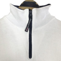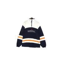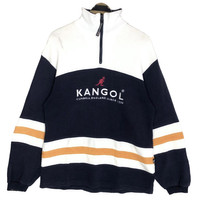 Vintage 90s Kangol England turtleneck sweatshirt in white and navy blue colour. Quarter zipped sweater with embroidered logo on the front. Still in good condition EXCEPT some washable dirts on the shoulder and on the front. See pictures for more details Condition : 7.9/10 Measurement Pit : 20.5 inch Length : 28 inch Shoulder : 22 inch Sleeve : 24.5 inch Size On Tag : M Size Recommended : S-M Normal Shipping FEDEX Processing time : 7-14 days Express Shipping DHL Processing time : 4-7 days IMPORTANT Check the manual measurement given before purchase. Failed to do so, no refund. StuffM174