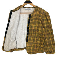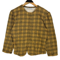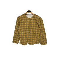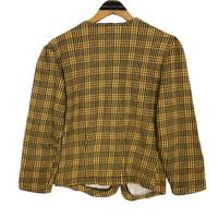 Vintage 90s Norma Kamali knitted button short jacket in yellow colour. Snap button jacket in plaid/checkered pattern. Still in good condition. See pictures for more details Condition : 9/10 Measurement Pit : 19 inch Length : 20 inch Shoulder : 16.5 inch Sleeve : 19.5 inch Size On Tag : M Size Recommended : S-M Normal Shipping FEDEX Processing time : 7-14 days Express Shipping DHL Processing time : 4-7 days IMPORTANT Check the manual measurement given before purchase. Failed to do so, no refund. StuffM170