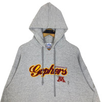 Vintage 90s University Of Minnesota Gophers football sweatshirt with hoodie in grey colour. Pullover sweater with embroidered logo on the front. Still in good condition EXCEPT some washable dirts on the sweater. See pictures for more details Condition : 7.9/10 Measurement Pit : 25 inch Length : 29.5 inch Shoulder : 26 inch Sleeve : 23 inch Size On Tag : XL Size Recommended : L-XL Normal Shipping FEDEX Processing time : 7-14 days Express Shipping DHL Processing time : 4-7 days IMPORTANT Check the manual measurement given before purchase. Failed to do so, no refund. StuffM177