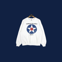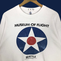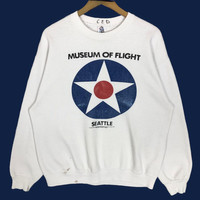 Vintage 90s US Air Force Museum Of Flight crewneck sweatshirt in white colour. Pullover sweater with printed logo on the front. Still in good condition EXCEPT some stains on the front. See pictures for more details Condition : 6.9/10 Measurement Pit : 22.5 inch Length : 24.5 inch Shoulder : 23 inch Sleeve : 21.5 inch Size On Tag : L Size Recommended : M Normal Shipping FEDEX Processing time : 7-14 days Express Shipping DHL Processing time : 4-7 days IMPORTANT Check the manual measurement given before purchase. Failed to do so, no refund. StuffM181