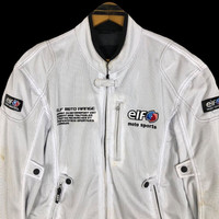 Vintage elf Copetition moto sports racing jacket in white colour. Zip up biker jacket with embroidered patches. Still in good condition EXCEPT some washable stains on the jacket. See pictures for more details Condition : 6.9/10 Measurement Pit : 22 inch Length : 26 inch Shoulder : 20.5 inch Sleeve : 26.5 inch Size On Tag : L Size Recommended : L Normal Shipping FEDEX Processing time : 7-14 days Express Shipping DHL Processing time : 4-7 days IMPORTANT Check the manual measurement given before purchase. Failed to do so, no refund. StuffM190
