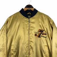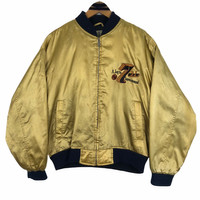Vintage Expressly Battlefront bomber jacket in gold colour. Zip up quilt lining light jacket with embroidered logo on both side. Good condition. See the pictures for more details Condition : 9/10 Measurement Pit : 26 inch Length : 24 inch Shoulder : 21.5 inch Sleeve : 23.5 inch Size On Tag : None Size Recommended : L-XL Shipping DHL Processing time : 3-5 days IMPORTANT Check the manual measurement given before purchase. Failed to do so, no refund. StuffM87