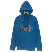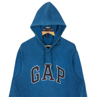 Vintage GAP sweatshirt with hoodie in blue colour. Pullover sweater with embroidered logo on the front. Good condition EXCEPT few stains. See pictures for more details Condition : 7.7/10 Measurement Pit : 24.5 inch Length : 27.5 inch Shoulder : 20.5 inch Sleeve : 25 inch Size On Tag : M Size Recommended : L Shipping DHL Processing time : 3-5 days IMPORTANT Check the manual measurement given before purchase. Failed to do so, no refund. StuffM117