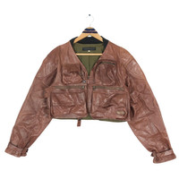 Vintage Harold’s Gear Haroruzugia women’s shirt leather jacket in brown colour. Full zip short rider/biker jacket with pockets on the front. Good condition. See pictures for more details Condition : 9/10 Measurement Pit : 21 inch Length : 17 inch Shoulder : 19 inch Sleeve : 24 inch Size On Tag : F Size Recommended : S-M Shipping DHL Processing time : 3-5 days IMPORTANT Check the manual measurement given before purchase. Failed to do so, no refund. StuffM114