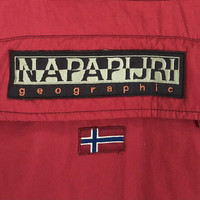 Vintage Napapijri Geographic light jacket in red colour. Hooded windbreaker jacket with embroidered logo on the front. Still in good condition EXCEPT slightly defect but fixed. See pictures for more details Condition : 9/10 Measurement Pit : 21 inch Length : 22 inch Shoulder : 17.5 inch Sleeve : 17 inch Size On Tag : 8 Size Recommended : XS-S Shipping DHL Processing time : 3-5 days IMPORTANT Check the manual measurement given before purchase. Failed to do so, no refund. StuffM138