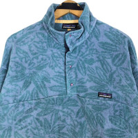 Vintage Patagonia mock neck fleece sweater in turquoise colour. Pullover sweatshirt in leaves pattern. Still in good condition EXCEPT slightly defect on the sleeve but can be fix. See pictures for more details Condition : 6.9/10 Measurement Pit : 24.5 inch Length : 28.5 inch Shoulder : 23.5 inch Sleeve : 23 inch Size On Tag : L Size Recommended : L Normal Shipping FEDEX Processing time : 7-14 days Express Shipping DHL Processing time : 4-7 days IMPORTANT Check the manual measurement given before purchase. Failed to do so, no refund. StuffM168