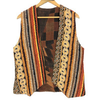 Vintage Patchwork Cutaway Reversible Vest Navajo Pattern