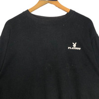 Vintage Playboy crewneck sweatshirt in black colour. Pullover sweater with embroidered logo on both sides. Still in good condition EXCEPT little bit sun bleach and some hairballs. See pictures for more details Condition : 7.9/10 Measurement Pit : 23.5 inch Length : 25 inch Shoulder : 20.5 inch Sleeve : 23.5 inch Size On Tag : L Size Recommended : L Normal Shipping FEDEX Processing time : 7-14 days Express Shipping DHL Processing time : 4-7 days IMPORTANT Check the manual measurement given before purchase. Failed to do so, no refund. StuffM174