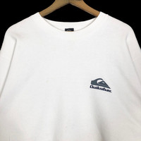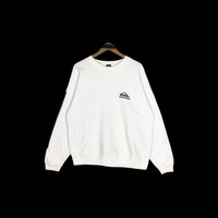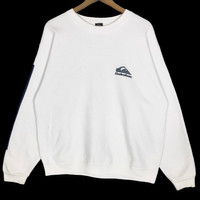 Vintage Quiksilver crewneck sweatshirt in white colour. Pullover sweater with printed logo on the chest and on both sleeves. Still in good condition EXCEPT some stains and small holes BUT ALREADY FIXED. See pictures for more details Condition : 7.9/10 Measurement Pit : 23 inch Length : 25 inch Shoulder : 21.5 inch Sleeve : 23.5 inch Size On Tag : none Size Recommended : M-L Normal Shipping FEDEX Processing time : 7-14 days Express Shipping DHL Processing time : 4-7 days IMPORTANT Check the manual measurement given before purchase. Failed to do so, no refund. StuffM172