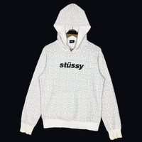 Vintage Stussy sweatshirt with hoodie in white colour. Pullover sweater with printed logo on the front. Still in good condition EXCEPT some small holes BUT FIXED. See pictures for more details Condition : 6.9/10 Measurement Pit : 20.5 inch Length : 25 inch Shoulder : 17.5 inch Sleeve : 26 inch Size On Tag : S Size Recommended : S Normal Shipping FEDEX Processing time : 7-14 days Express Shipping DHL Processing time : 4-7 days IMPORTANT Check the manual measurement given before purchase. Failed to do so, no refund. StuffM176