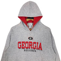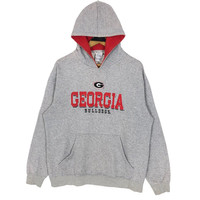 Vintage University Of Georgia Bulldogs football sweatshirt with hoodie in grey colour. Pullover sweater with embroidered logo on the front. Still in good condition EXCEPT some stains on the sweater. See pictures for more details Condition : 6.9/10 Measurement Pit : 23 inch Length : 27 inch Shoulder : 21.5 inch Sleeve : 23 inch Size On Tag : L Size Recommended : L Normal Shipping FEDEX Processing time : 7-14 days Express Shipping DHL Processing time : 4-7 days IMPORTANT Check the manual measurement given before purchase. Failed to do so, no refund. StuffM177