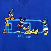 Vintage Walt Disney crewneck sweatshirt in blue colour. Embroidered logo on the front. Good condition EXCEPT small stains near the logo and small bleach effect stains in the sleeve. See pictures for more details Condition : 7/10 Measurement Pit : 23 inch Length : 25 inch Shoulder : 21.5 inch Sleeve : 23.5 inch Size On Tag : M Size Recommended : M-L Shipping DHL Processing time : 3-5 days IMPORTANT Check the manual measurement given before purchase. Failed to do so, no refund. StuffM92