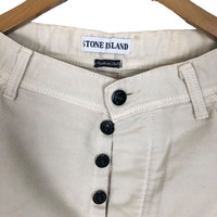 Vintage Stone Island Marina casual pants in cream colour. Still in good condition EXCEPT some washable dirts at the back and small stains on the the front. See pictures for more details Condition : 7.9/10 Measurement Waist : 15.5 inch Length : 41 inch Thigh : 11.5 inch Knee : 8.5 inch Leg Opening : 7 inch Front Rise : 12 inch Inseam : 30.5 inch Size On Tag : 46 Size Recommended : 31 inch Normal Shipping FEDEX Processing time : 7-14 days Express Shipping DHL Processing time : 4-7 days IMPORTANT Check the manual measurement given before purchase. Failed to do so, no refund. StuffM188