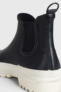 Chelsea Rainwalker is our take on the classic Chelsea boot. Handmade in 100% natural rubber, these rainboots are both completely waterproof and comfortable, as the natural rubber will mould into shape around the wearer’s feet with use. The sleek silhouette and finish make these wellies perfect for a smart city look when it rains. GARMENT DETAILS - 100% natural rubber - Handmade - Cotton lining - Completely waterproof - Moulds into shape with use - Rubber grip sole - Metal ring pull tab - Rubber patch logo - Designed in Stockholm - Made in Europe MATERIAL Shell: 100% natural rubber Lining: 100% cotton Read more about our fabrics