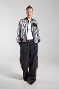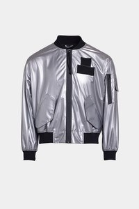 Bredsand Silver is a unisex bomber jacket crafted from a light-reflecting thermo fabric, providing warmth while being light and breathable. The waterproof zipper ensures protection from the elements. Practicality is enhanced with pocket lids and interior zip pockets, while ribbed cuffs, collar, and hem offer a sleek, comfortable fit for everyday wear. The model is 175 cm / 5′ 9” Wearing → SIZE S GARMENT DETAILS - Silver thermo exterior fabric - Nylon mesh lining - Wind and water-resistant - Unisex style - Aquaguard zipper - Slanted side pockets with lids - Two interior pockets with zip - Sleeve-pocket - Ribbed cuff, collar and bottom hem - Velcro patch on lapel - Designed in Stockholm - Made in Europe MATERIAL Coating: 100% polyester Membrane: 100% polyurethane Read more about our fabrics