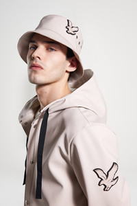 The Lyle & Scott Beckholmen hat is a classic bucket hat, perfect for drizzly days on the course. A unisex style featuring a chunky tone-in-tone Golden Eagle rubber patch above the rim and Lyle & Scott's 150th jubilee tartan on the inside lining. Artisanally made from sturdy 530-gram waterproof fabric. GARMENT DETAILS • Heavyweight 530-gram fabric • Completely waterproof • Tone-in-tone Golden Eagle rubber patch above rim • Lined with Lyle & Scott 150th jubilee tartan • Debossed STUTTERHEIM logo above brim • Double welded seams • Eyelets for ventilation • +20 000 mm water column pressure • Unisex style • Design in Stockholm • Made in Europe MATERIAL Coating: 100% PVC rubberized coating Membrane: 52% cotton, 48% polyester Lining: 70% cotton, 30% polyester Read more about our fabrics