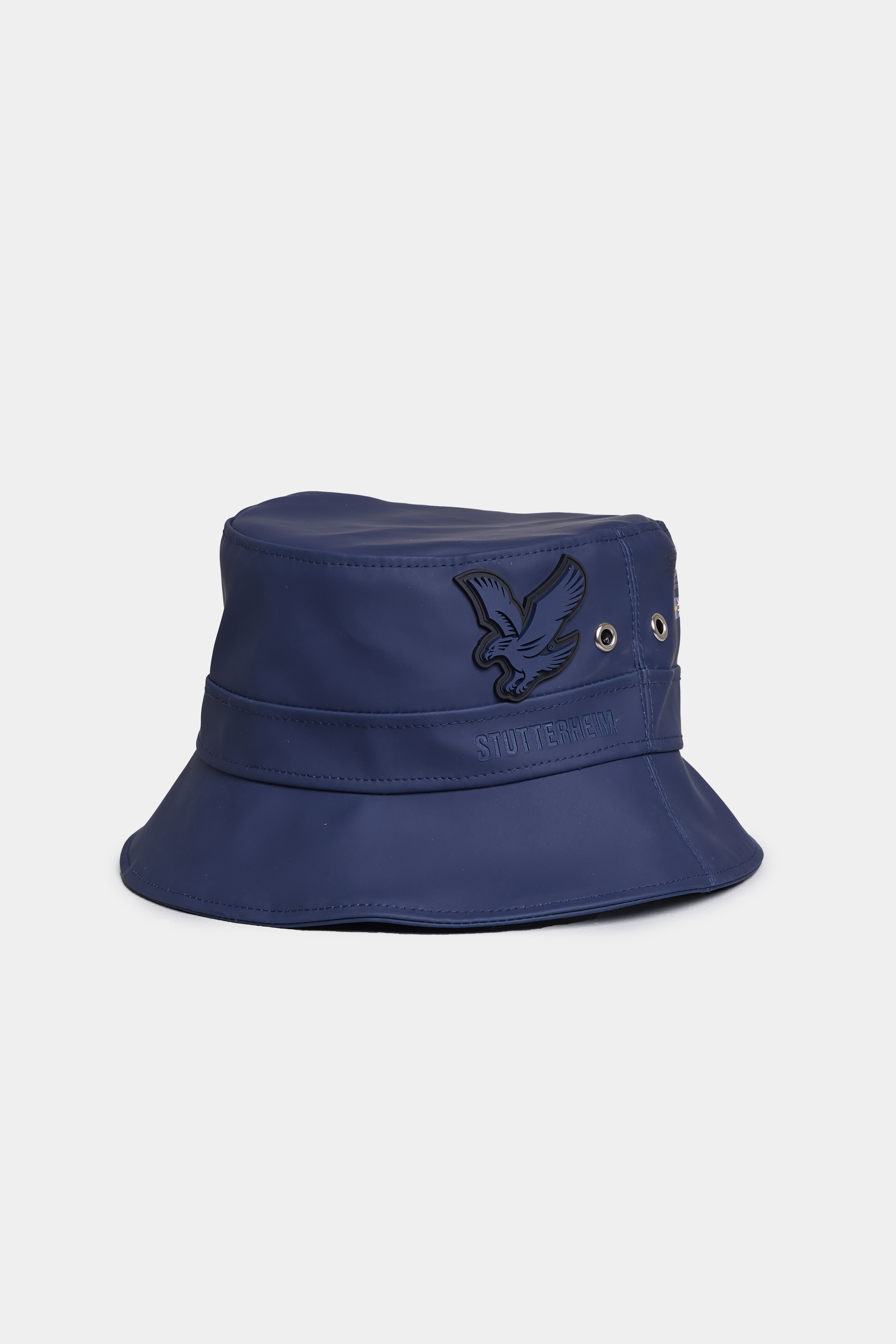 The Lyle & Scott Beckholmen hat is a classic bucket hat, perfect for drizzly days on the course. A unisex style featuring a chunky tone-in-tone Golden Eagle rubber patch above the rim and Lyle & Scott's 150th jubilee tartan on the inside lining. Artisanally made from sturdy 530-gram waterproof fabric. GARMENT DETAILS • Heavyweight 530-gram fabric • Completely waterproof • Tone-in-tone Golden Eagle rubber patch above rim • Lined with Lyle & Scott 150th jubilee tartan • Debossed STUTTERHEIM logo above brim • Double welded seams • Eyelets for ventilation • +20 000 mm water column pressure • Unisex style • Design in Stockholm • Made in Europe MATERIAL Coating: 100% PVC rubberized coating Membrane: 52% cotton, 48% polyester Lining: 70% cotton, 30% polyester Read more about our fabrics
