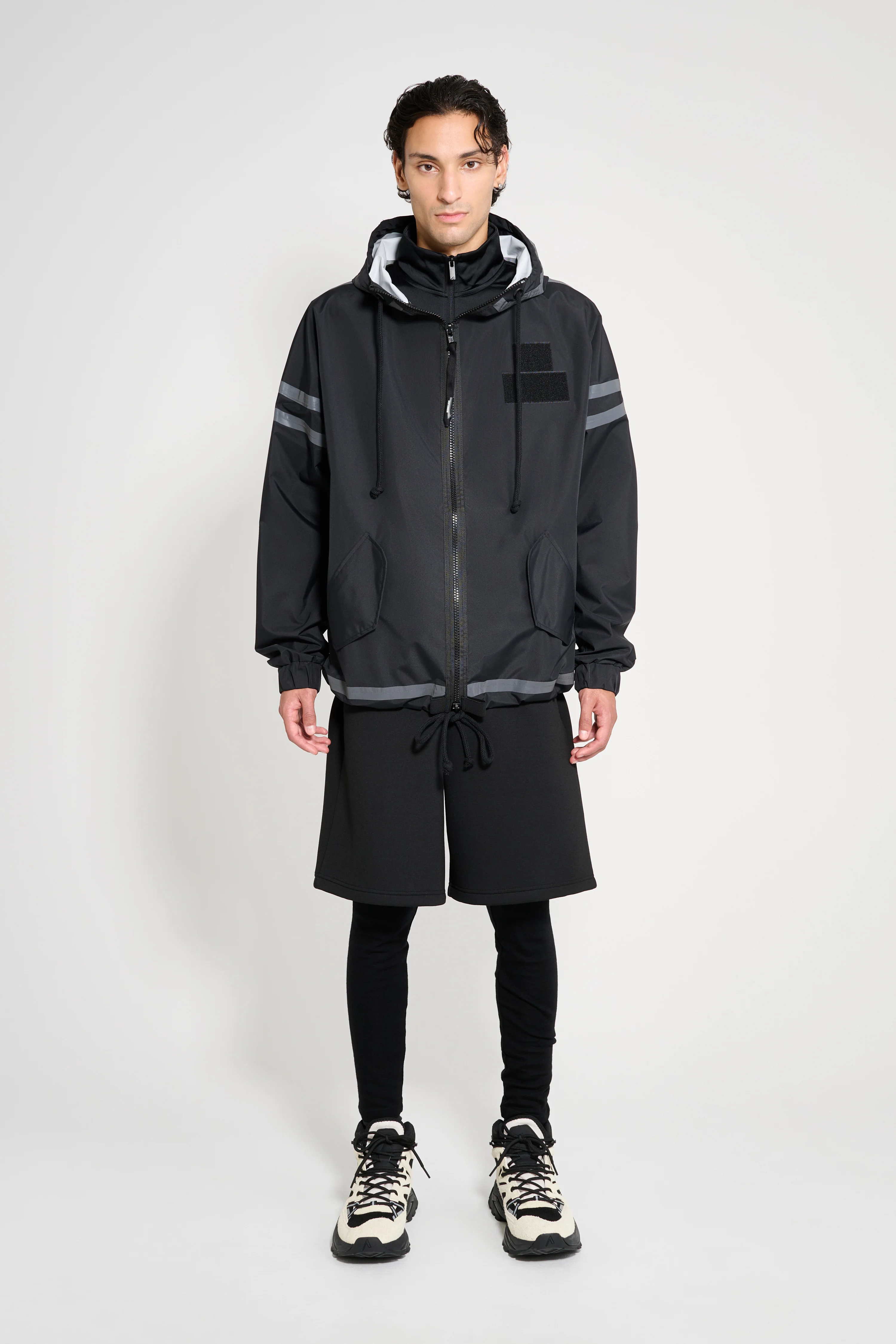 Forsa Full Zip is an short hooded rain jacket for men in breathable and water-resistant nylon fabric. Constructed with taped inside seams to ensure protection against rain, this relaxed-fit jacket is designed for functionality. The drawstring hood and adjustable bottom hem with chunky cotton strings add flexibility and comfort while the decorative reflective taped stripes make for a practical and stylish detail. GARMENT DETAILS - Breathable woven nylon fabric - Wind and water-resistant - Relaxed fit - Decorative reflective tape-detailing - Taped inside seams - Elastic sleeve cuffs - Side pockets patch lids - Drawstring hood with chunky cotton laces - Adjustable bottom hem with chunky drawstring cotton laces - Under-arm eyelets for ventilation - Velcro patch on lapel - Designed in Stockholm - Made in Europe MATERIAL Coating: 100% polyester Membrane: 100% polyurethane Read more about our fabrics