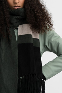 Fringe Scarf is a long rib-knitted scarf for men and women in super soft merino wool. Extra long fringes and colour-block stripes add charm to this perfect accessory to go with your waterproof STUTTERHEIM coat on cold weather days. GARMENT DETAILS - 9gg knitted rib - Unisex style - Colour-block stripes - Extra long - Long fringes - Embroidered STUTTERHEIM logo - 240cm x 26cm / 94.5” x 10.24” - Designed in Stockholm - Made in Europe MATERIAL 100% Merino wool