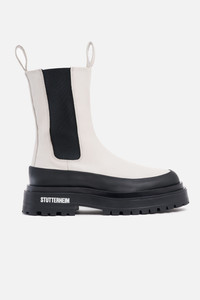 The Highwalker boots are chunky mid-calf boots perfect for the cold seasons. A true statement boot, it elevates any outfit and pairs excellently with a raincoat from STUTTERHEIM. Crafted in the finest quality leather, these comfortable boots will stand the test of time while the waterproof lug sole and rubber rim ensure protection from leakage and wet feet. Double pull tabs and elastic on the sides of the shaft make these stompers easy to pull on and off. GARMENT DETAILS • Waterproof chunky rubber lug sole • Waterproof rubber rim above sole • Mid-calf length • High-quality elastic on both sides of shaft • Double pull tabs at top of shaft • Raised STUTTERHEIM logo on rubber sole exterior • Small nylon logo label on shaft side • Designed in Stockholm • Made in Europe