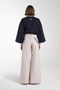 Jarla are coverall trousers for women in light and airy waterproof fabric. Constructed with double-welded seams for complete rain protection, these trousers are perfect for staying stylish in wet weather. The high drawstring waist and wide leg add femininity and ease of movement as well as making the trousers quick and easy to transition in and out of. The front patch pocket on each leg and slanted single back pocket with an aqua guard zipper add practicality as well as a stylish touch. The model is 177 cm / 5′ 10″ Wearing → SIZE XS GARMENT DETAILS - Lightweight 230-gram fabric - Completely waterproof - High-waist with elasticated hem - Wide leg - Double-welded seams - Front patch pocket on each leg - Open side pocketsSlanted single back pocket with aqua guard zipper - +20 000 mm water column pressure - Designed in Stockholm - Made in Europe MATERIAL Coating: 100% PVC rubberized coating Membrane: 100% polyester Read more about our fabrics