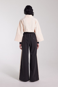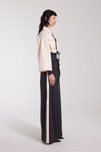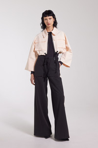 Lilla Tre Zip is a super cropped collared rain jacket for women in light and airy waterproof fabric that is crafted with double-welded seams, making it impossible for any moisture to seep through. This short and stylish piece is perfect for layering and to pair with one of our high-waisted rain trousers for a completely waterproof yet fashionable look. The model is 176 cm / 5′ 8″ Wearing → SIZE S GARMENT DETAILS - Lightweight 230-gram fabric - Completely waterproof - Cropped body length - Wide bell sleeves - Chunky laced drawstring at waist hem - Aquaguard front zip - Two front patch pockets - Extra large under-arm eyelets for ventilation - Shirt-style collar - Seamless shoulder construction - +20 000 mm water column pressure - Designed in Stockholm - Made in Europe MATERIAL Coating: 100% PVC rubberized coating Membrane: 100% polyester Read more about our fabrics