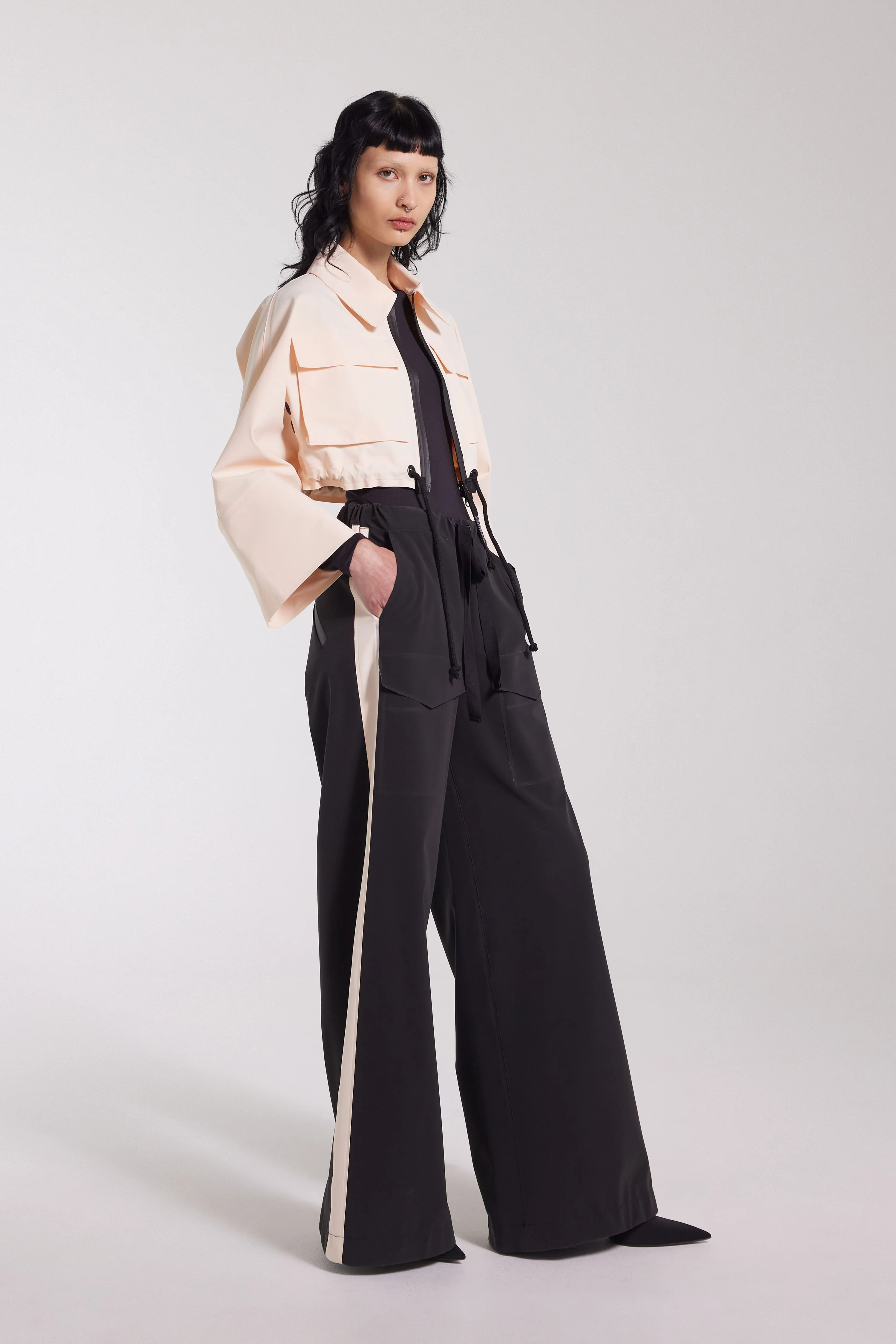 Lilla Tre Zip is a super cropped collared rain jacket for women in light and airy waterproof fabric that is crafted with double-welded seams, making it impossible for any moisture to seep through. This short and stylish piece is perfect for layering and to pair with one of our high-waisted rain trousers for a completely waterproof yet fashionable look. The model is 176 cm / 5′ 8″ Wearing → SIZE S GARMENT DETAILS • Lightweight 230-gram fabric • Completely waterproof • Cropped body length • Wide bell sleeves • Chunky laced drawstring at waist hem • Aquaguard front zip • Two front patch pockets • Extra large under-arm eyelets for ventilation • Shirt-style collar • Seamless shoulder construction • +20 000 mm water column pressure • Designed in Stockholm • Made in Europe MATERIAL Coating: 100% PVC rubberized coating Membrane: 100% polyester Read more about our fabrics