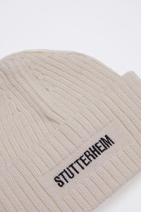 Logo Beanie is the perfect autumn and winter accessory to top off your waterproof STUTTERHEIM outfit. This rib-knitted hat in a classic unisex style is made from super soft merino wool and has the STUTTERHEIM logo embroidered on the front in a contrasting colour. GARMENT DETAILS - 9gg knitted rib - Unisex style - Contrast colour embroidered logo on brim - Designed in Stockholm - Made in Europe MATERIAL 100% Merino wool