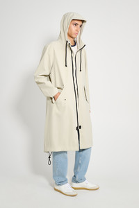 Martins is a straight-fitting fishtail parka for men in sturdy and hard-wearing waterproof fabric. Expertly made, this rain jacket is tailored with triple-welded seams for complete protection against wet weather. A capped drawstring hood keeps rain out of your hair, while side pockets with flaps and a snap button closure keep valuables safe and dry. GARMENT DETAILS - Heavy midweight 380-gram fabric - Matte-textured finish - Completely waterproof - Calf-length - Adjustable drawstring fishtail back detail - Acrylic two-way zipper - Zipper pull-tabs for easy grip - Capped drawstring hood - Chunky cotton drawstrings - Slanted side pockets with flaps and snap button closure - Triple-welded seams - Under-arm eyelets for ventilation - +20 000 mm water column pressure - Designed in Stockholm - Made in Europe MATERIAL Coating: 100% PVC rubberized coating Membrane: 100% polyester Read more about our fabrics