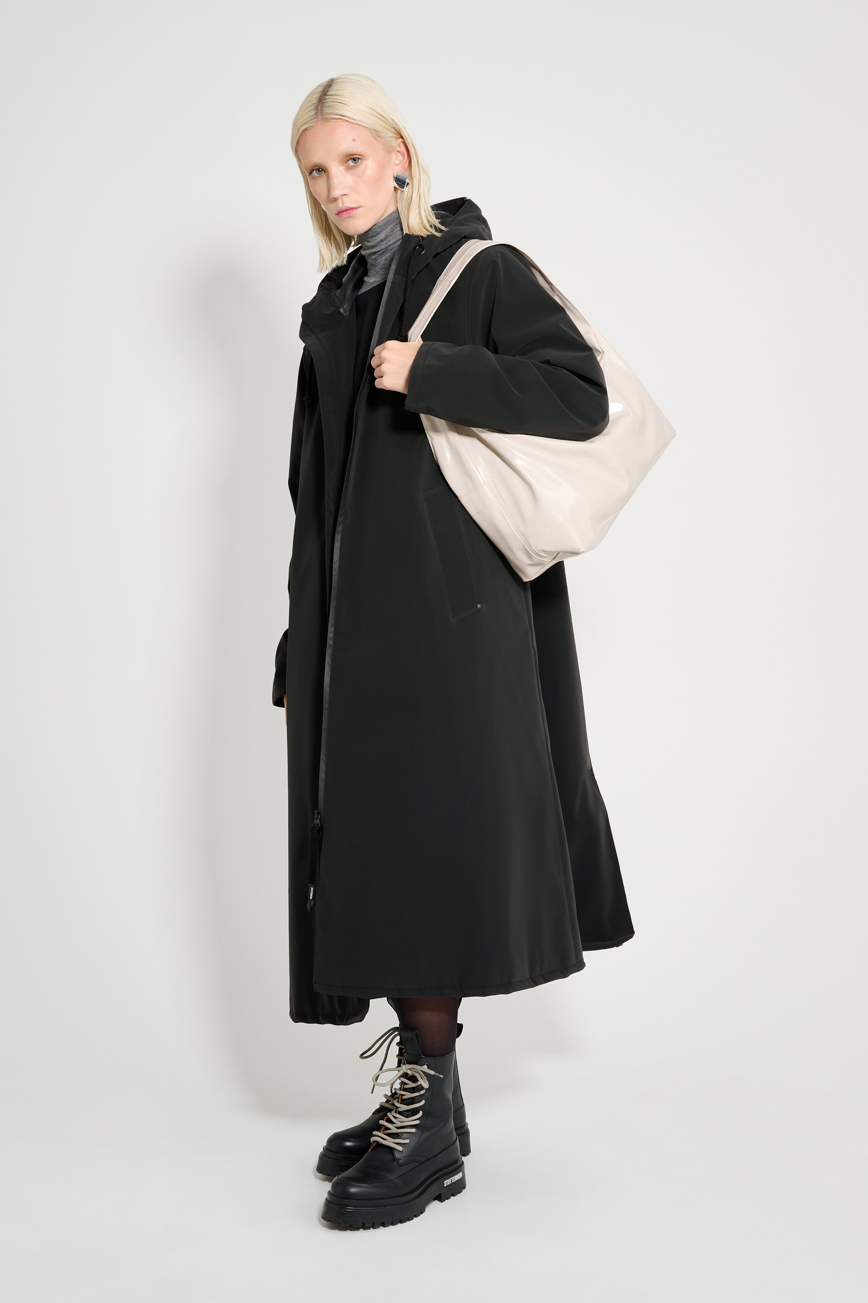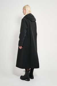 Mosebacke Long Winter Matte is an artisanally made knee-length and a-line-shaped warm raincoat for women. The sturdy and hard-wearing waterproof shell fabric has a matte-textured finish and is tailored with double-welded seams, making it impossible for any moisture to seep through, while the padding provides warmth during cold and snowy weather. Ease of movement and comfort is achieved with knitted wristlets and a drawstring hood. GARMENT DETAILS • Midweight 280-gram shell fabric • Matte-textured finish • Completely waterproof • 150-gram technical insulator filling • Polyester lining • A-line silhouette • Knee-length • Aqua guard zipper • Nylon logo pull tab • Drawstring hood • Knitted wristlets • Fleece-lined welt side pockets • Fleece-lined inside welt pocket • Double welded seams • +20 000 mm water column pressure • Designed in Stockholm • Made in Europe MATERIAL Coating: 100% PVC rubberized coating Membrane: 100% polyester Lining: 100% polyester with poly filling Read more about our fabrics