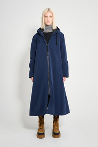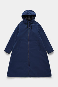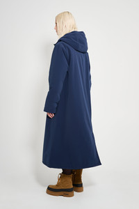 Mosebacke Long Winter Matte is an artisanally made knee-length and a-line-shaped warm raincoat for women. The sturdy and hard-wearing waterproof shell fabric has a matte-textured finish and is tailored with double-welded seams, making it impossible for any moisture to seep through, while the padding provides warmth during cold and snowy weather. Ease of movement and comfort is achieved with knitted wristlets and a drawstring hood. GARMENT DETAILS • Midweight 280-gram shell fabric • Matte-textured finish • Completely waterproof • 150-gram technical insulator filling • Polyester lining • A-line silhouette • Knee-length • Aqua guard zipper • Nylon logo pull tab • Drawstring hood • Knitted wristlets • Fleece-lined welt side pockets • Fleece-lined inside welt pocket • Double welded seams • +20 000 mm water column pressure • Designed in Stockholm • Made in Europe MATERIAL Coating: 100% PVC rubberized coating Membrane: 100% polyester Lining: 100% polyester with poly filling Read more about our fabrics