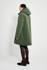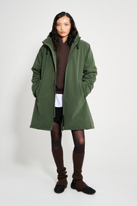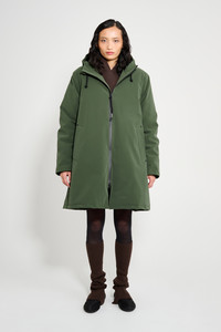 Mosebacke Winter Matte is an artisanally made a-line-shaped warm raincoat for women. The sturdy and hard-wearing waterproof shell fabric has a matte-textured finish and is tailored with double-welded seams, making it impossible for any moisture to seep through, while the padding provides warmth during cold and snowy weather. Ease of movement and comfort is achieved with knitted wristlets and a drawstring hood. GARMENT DETAILS • Midweight 280-gram shell fabric • Matte-textured finish • Completely waterproof • 150-gram technical insulator filling • Polyester lining • A-line silhouette • Aqua guard zipper • Nylon logo pull tab • Drawstring hood • Knitted wristlets • Fleece-lined welt side pockets • Fleece-lined inside welt pocket • Double welded seams • +20 000 mm water column pressure • Designed in Stockholm • Made in Europe MATERIAL Coating: 100% PVC rubberized coating Membrane: 100% polyester Lining: 100% polyester with poly filling Read more about our fabrics