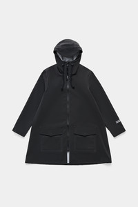 Meet Mosebacke 2.0. Based on our classic style Mosebacke, this version of the A-lined raincoat for women boasts of all the features that make the original an essential wardrobe staple, while incorporating new and improved features based on customer feedback. Expertly made in light and airy waterproof fabric and tailored with triple-welded seams to keep any moisture from seeping through, the new features include patch pockets with flaps to keep your valuables dry and safe as well as a capped hood for clear vision and perfect hair, even in less than perfect weather. GARMENT DETAILS • Lightweight 280-gram fabric • Packable • Completely waterproof • A-line silhouette • Heavy acrylic zipper • Capped drawstring hood • Chunky cotton drawstrings • Patch pockets with flaps • Triple-welded seams • Under-arm eyelets for ventilation • +20 000 mm water column pressure • Designed in Stockholm • Made in Europe MATERIAL Coating: 100% PVC rubberized coating Membrane: 100% polyester Read more about our fabrics