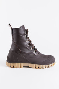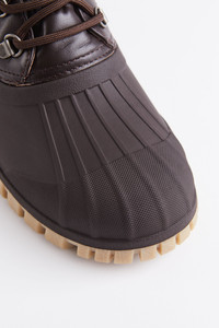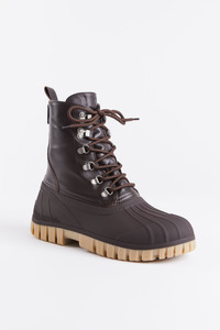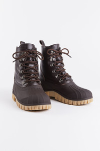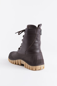 Patrol Boots are modern duck boots made for urban usage. Stylish as well as practical — a perfect trans-seasonal shoe suitable in spring and autumn, as well as winter when paired with warm socks or an added thermo sole. Constructed with a leather upper which has been treated to be water-repellent and a galosh-style duck sole, you can rest assured that your feet will be kept dry. The rubber lug sole ensures a firm grip on slippery ground and the padded ankle-length shaft adds warmth and comfort on days you need it the most. GARMENT DETAILS • Waterproof rubber lug sole • Water-repellent treated leather upper • Galosh-style duck sole • Rounded shell toe • Ankle-length • Front lace-up fastening • Small logo patch on shaft • Padded ankle • Pull-tab at back • Unisex style • Designed in Stockholm • Made in Europe MATERIAL Upper: Vegetable-tanned Italian leather Outsole: Rubber Laces and details: Polyester and metal Read more about our fabrics
