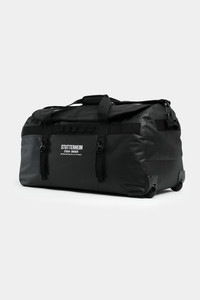 Rain Trolley is a large waterproof suitcase that can be used as a wheelie bag or as a duffel bag. Equipped with wheels and a telescopic handle as well as an adjustable crossbody strap, it is possible to alternate between ways of carrying and adjust according to the weight of the load. An inner mesh pocket, as well as a compartment on the top lid, allows for clever packing while the generous size of the main compartment leaves enough room even for the heaviest of packers – this is the ultimate suitcase. GARMENT DETAILS - Completely waterproof - Telescopic handle - Wheels - Adjustable crossbody strap - Top handle - Inner mesh compartment - Zipped top lid compartment - 8000 mm water column pressure - Designed in Stockholm - Height: 40 cm / 15" - Length: 70 cm / 27" - Width 37 cm / 14" - Capacity: 115 litres / 30 gallons - Weight: 4kg MATERIAL 87% PVC and 13% polyester Read more about our fabrics