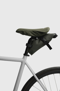 A compact, 100% rainproof bicycle bag that sits under your seat to keep your everyday essentials safe and dry. Crafted from rest fabric from our raincoat production, it is lightweight and easy to attach, fitting almost any bike, with a roll closure top for easy access. GARMENT DETAILS • Length: 26 cm / 10.25" • Width: 10 cm / 4"