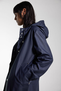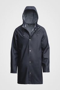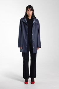 Stockholm Lightweight is a straight-fit raincoat in ultra-light waterproof fabric. Expertly made, it’s tailored with double-welded seams for complete protection against the rain. The drawstring hood and under-arm eyelets add ease of movement and comfort in uncomfortable weather. The thin and packable fabric makes this garment perfect when on the go. The model is 175 cm / 5′ 9” Wearing → SIZE XS GARMENT DETAILS • Lightweight 230-gram fabric • Packable • Completely waterproof • Straight unisex fit • Snap metal button closures • Drawstring hood • Open welt pockets • Double welded seams • Under-arm eyelets for ventilation • +20 000 mm water column pressure • Designed in Stockholm • Made in Europe MATERIAL Coating: 100% PVC rubberized coating Membrane: 100% polyester Read more about our fabrics