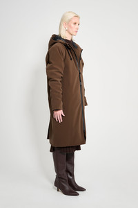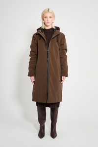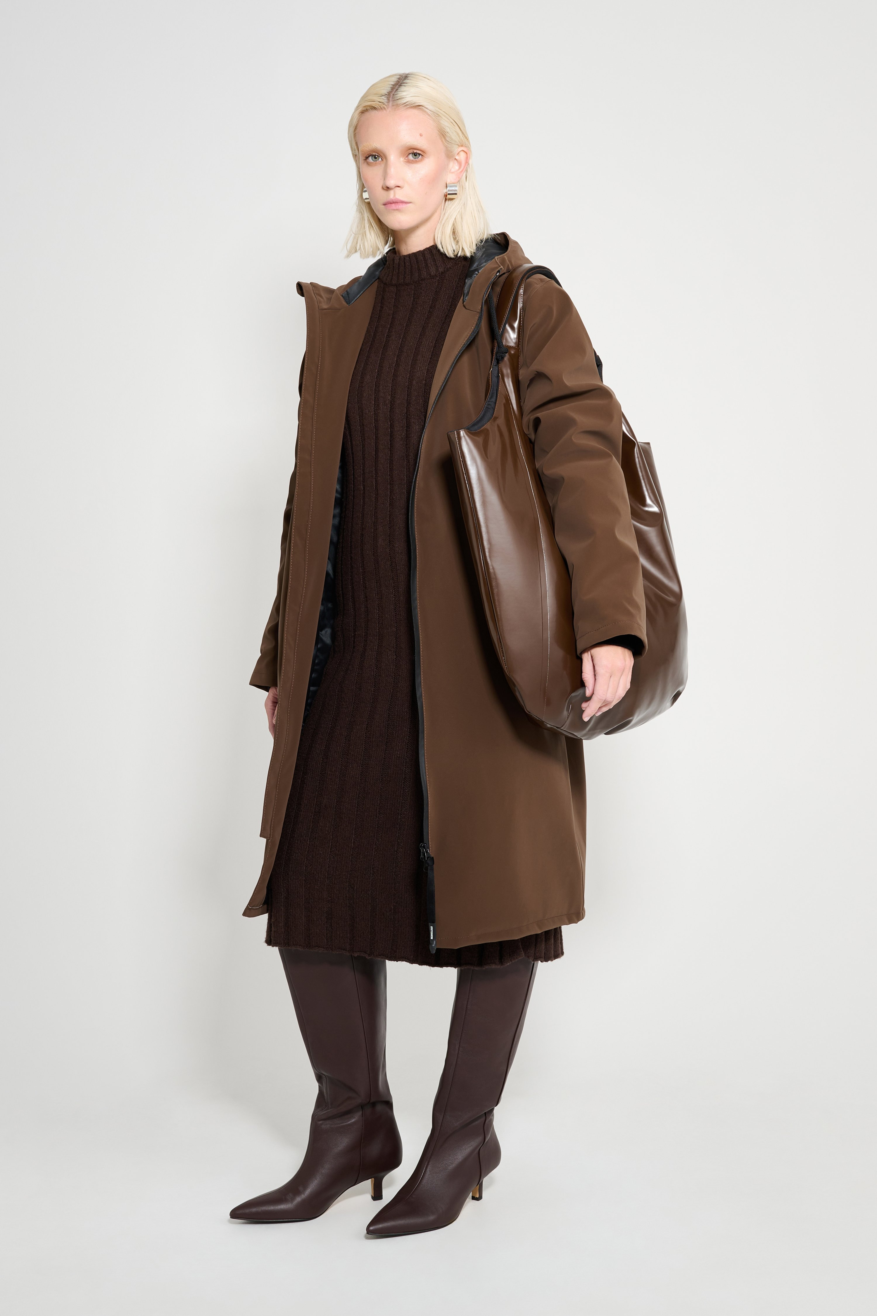 Stockholm Long Winter Matte is a straight-fit knee-length warm raincoat in sturdy and hard-wearing waterproof fabric with a matte-textured finish. It’s insulated with padding for warmth during the winter season. Expertly made, it’s tailored with double-welded seams for complete protection against rain and snow. The drawstring hood and knitted wristlets add ease of movement and comfort in uncomfortable weather. GARMENT DETAILS • Midweight 280-gram shell fabric • Matte-textured finish • Completely waterproof • 150-gram technical insulator filling • Polyester lining • Straight unisex fit • Knee-length • Aqua guard zipper • Nylon logo pull tab • Drawstring hood • Knitted wristlets • Fleece-lined welt side pockets • Fleece-lined inside welt pocket • Double welded seams • +20 000 mm water column pressure • Designed in Stockholm • Made in Europe MATERIAL Coating: 100% PVC rubberized coating Membrane: 100% polyester Lining: 100% polyester with poly filling Read more about our fabrics