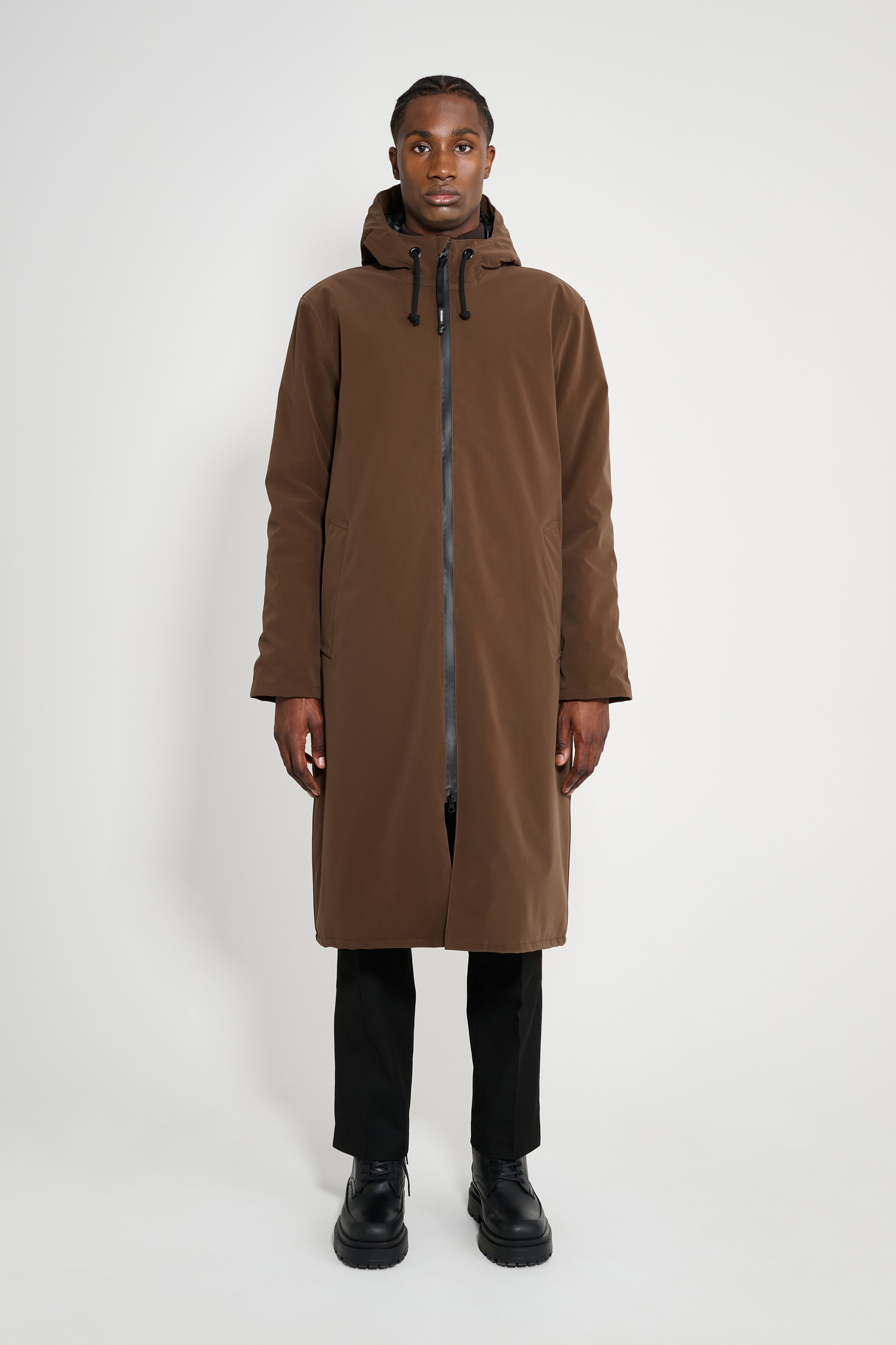 Stockholm Long Winter Matte is a straight-fit knee-length warm raincoat in sturdy and hard-wearing waterproof fabric with a matte-textured finish. It’s insulated with padding for warmth during the winter season. Expertly made, it’s tailored with double-welded seams for complete protection against rain and snow. The drawstring hood and knitted wristlets add ease of movement and comfort in uncomfortable weather. GARMENT DETAILS • Midweight 280-gram shell fabric • Matte-textured finish • Completely waterproof • 150-gram technical insulator filling • Polyester lining • Straight unisex fit • Knee-length • Aqua guard zipper • Nylon logo pull tab • Drawstring hood • Knitted wristlets • Fleece-lined welt side pockets • Fleece-lined inside welt pocket • Double welded seams • +20 000 mm water column pressure • Designed in Stockholm • Made in Europe MATERIAL Coating: 100% PVC rubberized coating Membrane: 100% polyester Lining: 100% polyester with poly filling Read more about our fabrics