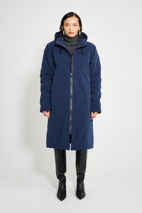 Stockholm Long Winter Matte is a straight-fit knee-length warm raincoat in sturdy and hard-wearing waterproof fabric with a matte-textured finish. It’s insulated with padding for warmth during the winter season. Expertly made, it’s tailored with double-welded seams for complete protection against rain and snow. The drawstring hood and knitted wristlets add ease of movement and comfort in uncomfortable weather. GARMENT DETAILS • Midweight 280-gram shell fabric • Matte-textured finish • Completely waterproof • 150-gram technical insulator filling • Polyester lining • Straight unisex fit • Knee-length • Aqua guard zipper • Nylon logo pull tab • Drawstring hood • Knitted wristlets • Fleece-lined welt side pockets • Fleece-lined inside welt pocket • Double welded seams • +20 000 mm water column pressure • Designed in Stockholm • Made in Europe MATERIAL Coating: 100% PVC rubberized coating Membrane: 100% polyester Lining: 100% polyester with poly filling Read more about our fabrics
