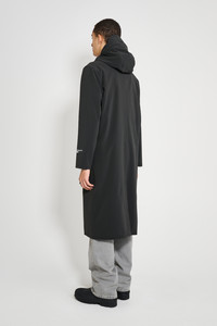 Stockholm Long Patch is a straight-fit knee-length raincoat in sturdy and hard-wearing waterproof fabric. Expertly made, it’s tailored with triple-welded seams for complete protection against the rain. The capped drawstring hood and under-arm eyelets add ease of movement and comfort in uncomfortable weather, while patch pockets with flaps keep valuables safe and dry. The model is 188 cm / 6'2 Wearing → SIZE M GARMENT DETAILS - Heavy midweight 380-gram fabric - Completely waterproof - Straight unisex fit - Knee-length - Acrylic two-way zipper - Capped drawstring hood - Chunky cotton drawstrings - Patch pockets with flaps - Triple-welded seams - Under-arm eyelets for ventilation - +20 000 mm water column pressure - Designed in Stockholm - Made in Europe MATERIAL Coating: 100% PVC rubberized coating Membrane: 52% Cotton, 48% polyester Read more about our fabrics