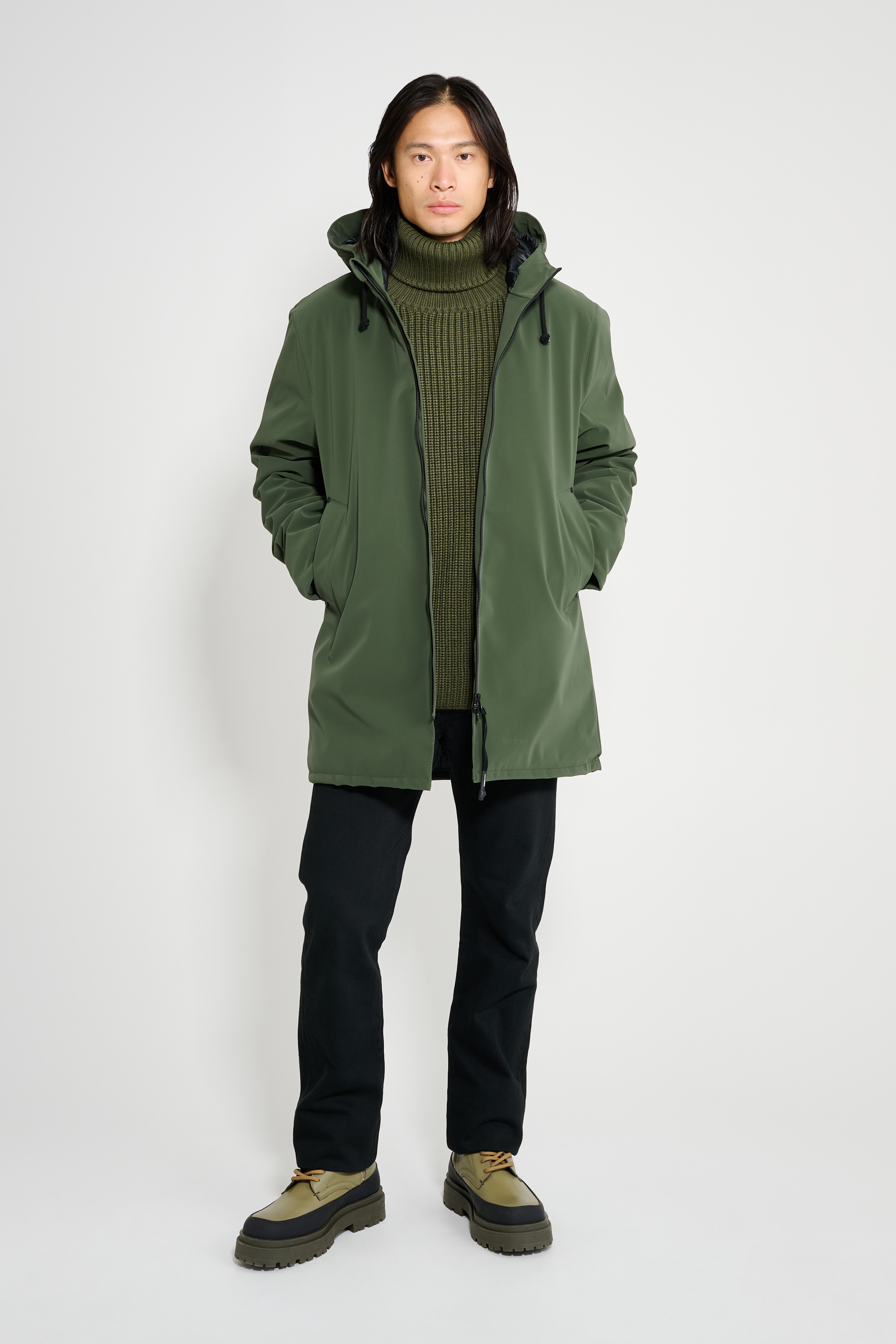Stockholm Winter Matte is a straight-fit warm raincoat in sturdy and hard-wearing waterproof fabric with a matte-textured finish. It’s insulated with padding for warmth during the winter season. Expertly made, it’s tailored with double-welded seams for complete protection against rain and snow. The drawstring hood and knitted wristlets add ease of movement and comfort in uncomfortable weather. GARMENT DETAILS • Midweight 280-gram shell fabric • Matte-textured finish • Completely waterproof • 150-gram technical insulator filling • Polyester lining • Straight unisex fit • Aqua guard zipper • Nylon logo pull tab • Drawstring hood • Knitted wristlets • Fleece-lined welt side pockets • Fleece-lined inside welt pocket • Double welded seams • +20 000 mm water column pressure • Designed in Stockholm • Made in Europe MATERIAL Coating: 100% PVC rubberized coating Membrane: 100% polyester Lining: 100% polyester with poly filling Read more about our fabrics