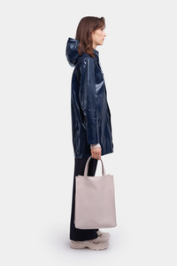 Stockholm Opal is a straight-fit raincoat in shiny yet sturdy waterproof fabric. Expertly made, it’s tailored with double-welded seams for complete protection against the rain. The drawstring hood and under-arm eyelets add ease of movement and comfort in uncomfortable weather. The model is 177 cm / 5′ 10″ Wearing → SIZE XS GARMENT DETAILS - Heavy-weight 530-gram fabric - Shiny high-gloss fabric finish - Completely waterproof - Straight unisex fit - Snap metal button closures - Drawstring hood - Open welt pockets - Double welded seams - Under-arm eyelets for ventilation - +20 000 mm water column pressure - Designed in Stockholm - Made in Europe MATERIAL Coating: 100% PVC rubberized coating Membrane: 52% cotton, 48% polyester Read more about our fabrics