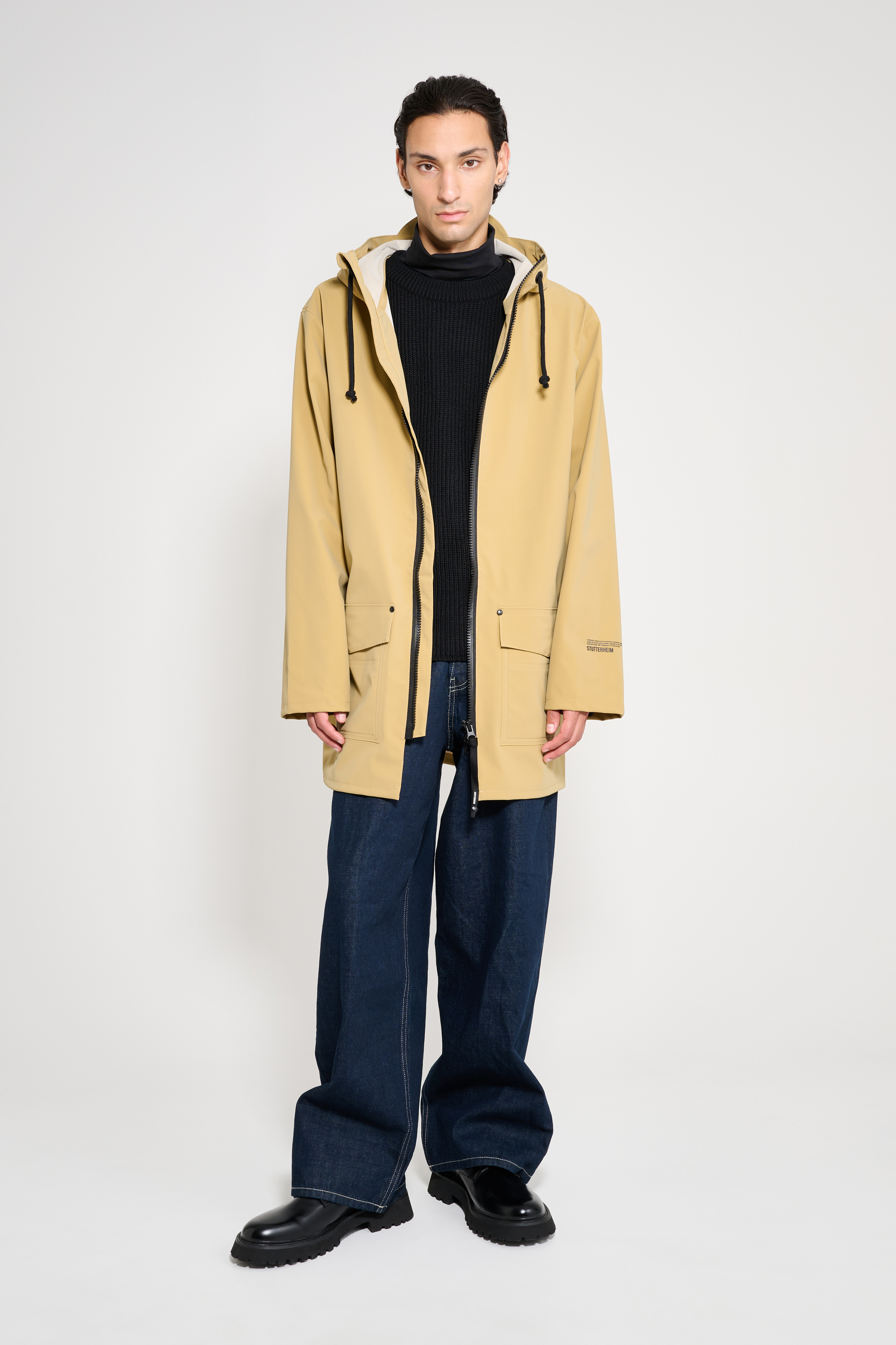 Say hello to Stockholm 2.0. Based on our classic style Stockholm, this version of the straight-fit, unisex raincoat boasts of all the features that make the original an essential wardrobe staple, while incorporating new and improved features based on customer feedback. Expertly made in light and airy waterproof fabric and tailored with triple-welded seams for complete rain protection, the new features include patch pockets with flaps to keep your carry-ons dry and safe and a capped hood for clear vision and comfort in uncomfortable weather. The model is 183 cm / 6'0 Wearing → SIZE M GARMENT DETAILS • Lightweight 280-gram fabric • Packable • Completely waterproof • Straight unisex fit • Heavy acrylic zipper • Capped drawstring hood • Chunky cotton drawstrings • Patch pockets with flaps • Triple-welded seams • Under-arm eyelets for ventilation • +20 000 mm water column pressure • Designed in Stockholm • Made in Europe MATERIAL Coating: 100% PVC rubberized coating Membrane: 52% cotton, 48% polyester Read more about our fabrics