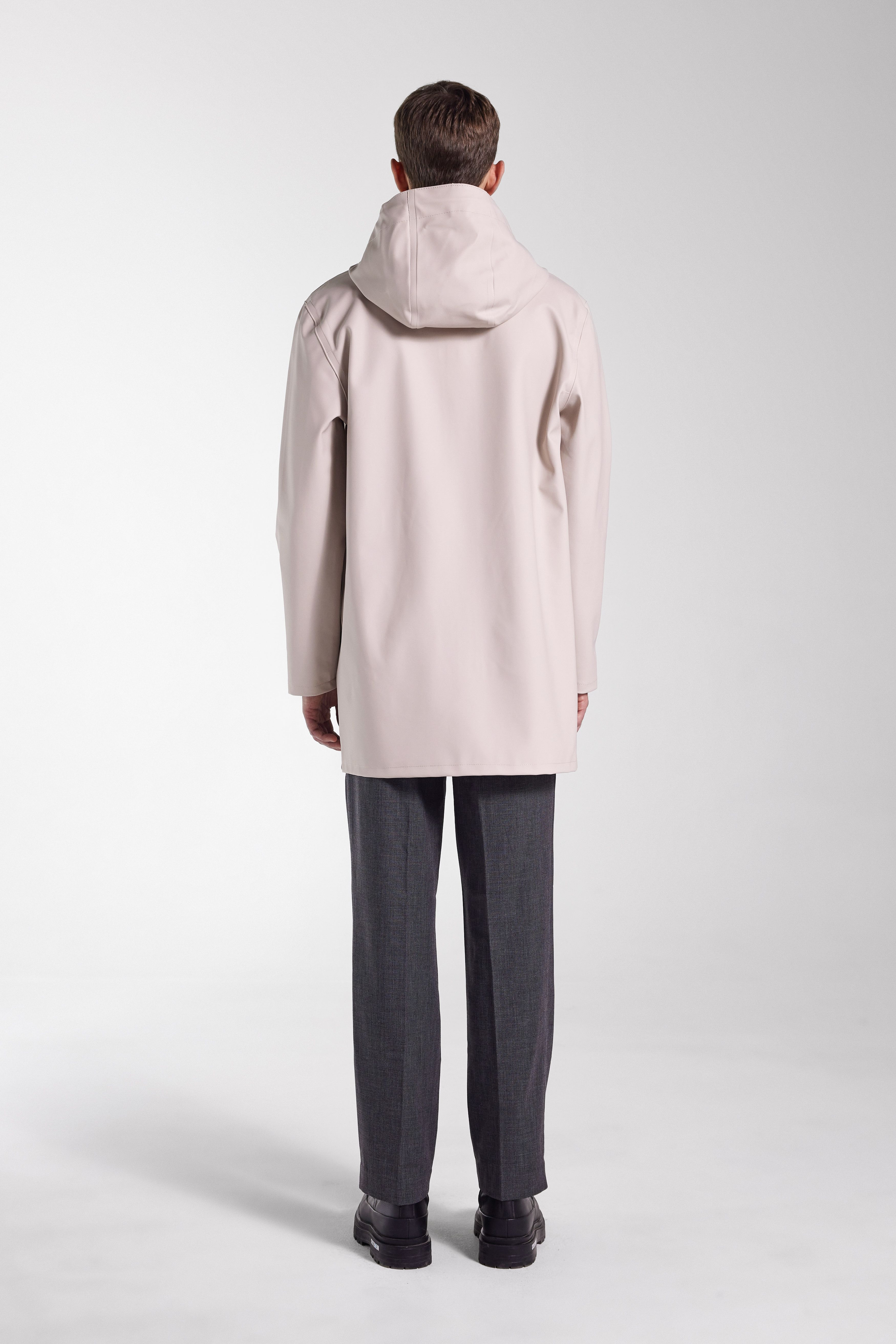 Stockholm, our home and your essential wardrobe staple is a straight-fit raincoat in sturdy and hard-wearing waterproof fabric. Expertly made, it’s tailored with double-welded seams for complete protection against the rain. The drawstring hood and under-arm eyelets add ease of movement and comfort in uncomfortable weather. The model is 187 cm / 6' 2" Wearing → SIZE M GARMENT DETAILS • Heavy-weight 530-gram fabric weight • Completely waterproof • Straight unisex fit • Snap metal button closures • Drawstring hood • Open welt pockets • Double welded seams • Under-arm eyelets for ventilation • +20 000 mm water column pressure • Designed in Stockholm • Made in Europe MATERIAL Coating: 100% PVC rubberized coating Membrane: 52% cotton, 48% polyester Read more about our fabrics