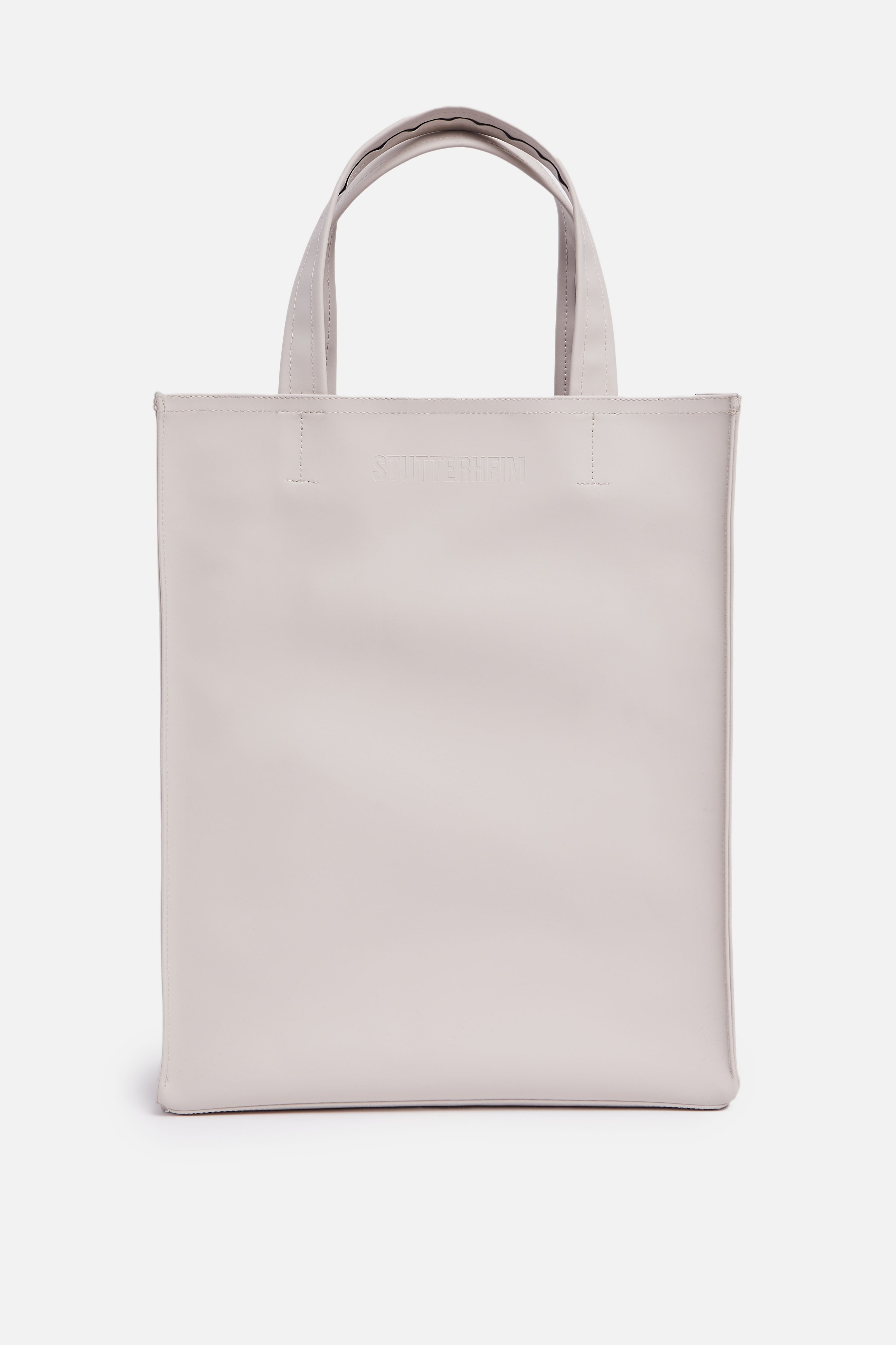 Stockstund is a classic tote bag crafted in dense and sturdy waterproof fabric, perfectly sized to fit a laptop as well as essential items such as a phone, wallet etc. This elegant, rectangular piece can be carried by hand or worn over the shoulder with generously-sized top handles. A magnetic snap button at the top opening keeps belongings safe while the Cordura membrane ensures durability. GARMENT DETAILS • Heavyweight 1200-gram fabric • Completely waterproof • Durable Cordura membrane • Magnetic metal snap button fastening • Top handles • Debossed logo at centre-top • Printed logo label inside • Fits laptop up to 14" size • +20 000 mm water column pressure • Height: 38 cm / 15″ • Width: 31 cm / 12.2″ • Depth: 12.5 cm / 4.9″ • Designed in Stockholm • Made in Europe MATERIAL Coating: 100% PVC rubberized coating Membrane: 100% polyester Read more about our fabrics