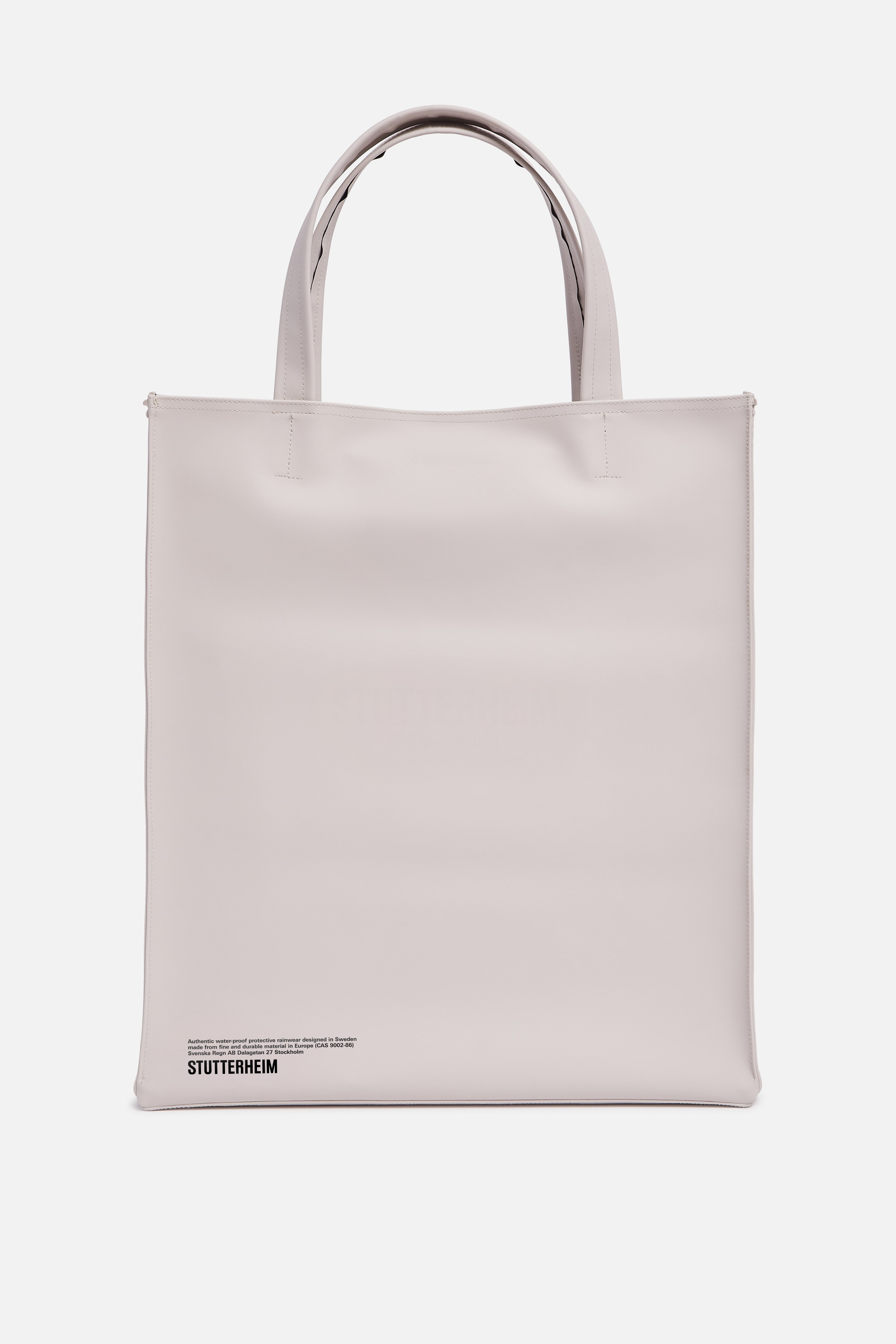 Stylist is an extra large tote bag crafted in dense and sturdy waterproof fabric, sized to fit many items, such as groceries, gym clothes, shopping etc. This elegant, rectangular piece can be carried by hand or worn over the shoulder with generously-sized top handles. A magnetic snap button at the top opening keeps belongings safe while the Cordura membrane ensures durability. GARMENT DETAILS • Heavyweight 1200-gram fabric • Completely waterproof • Durable Cordura membrane • Magnetic metal snap button fastening • Large top handles • Contrast colour printed logo at centre-front • Debossed logo at centre-top • Printed logo label inside • +20 000 mm water column pressure • Height: 45 cm / 17.7″ • Width: 40 cm / 15.7″ • Depth: 17.5 cm / 6.9″ • Designed in Stockholm • Made in Europe MATERIAL Coating: 100% PVC rubberized coating Membrane: 100% polyester Read more about our fabrics