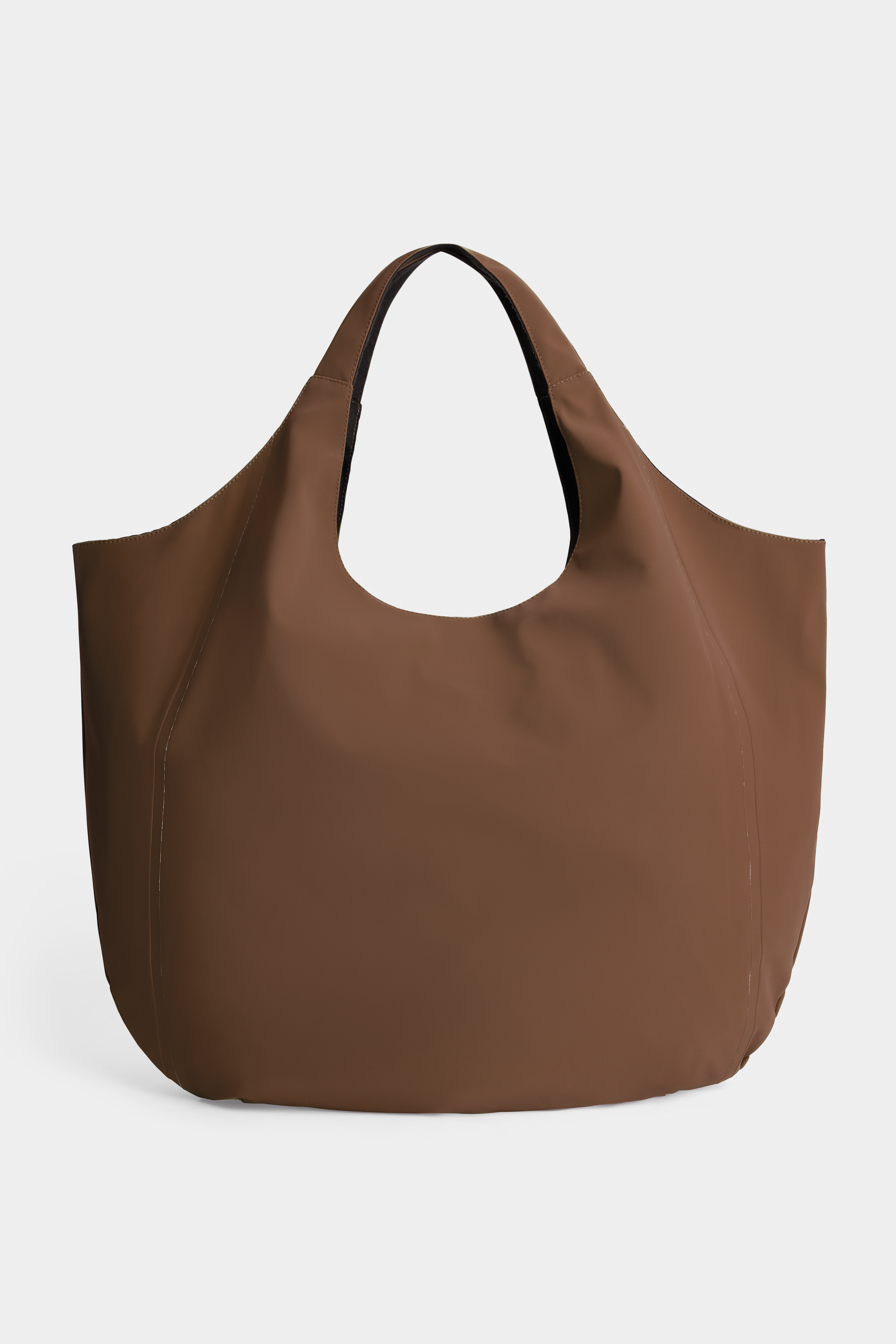 Svea Puffer Bag is a generously sized padded carry-all, suitable for everything from your weekly food shop to laundry runs, as a gym bag or even to pack for a weekend trip. Made in sturdy, hard-wearing waterproof fabric and constructed with double-welded seams, no moisture can get through to your belongings and the padding adds a layer of cushioned protection. The fleece-lined handles fit comfortably over the shoulder or in the hand while the inside zipped pocket secures small items or valuables. GARMENT DETAILS • Heavyweight 530-gram fabric • 150-gram technical insulator filling • Black cotton lining • Fleece-lined comfort grip handle • Double welded seams • Inside zip pocket • Inside phone pocket • Snap metal button closure • Debossed logo on front • Handles fit over shoulder or in hand • Height: 49 cm / 19" • Width: 62 cm / 24" • Designed in Stockholm • Made in Europe MATERIAL 100% PVC rubberized coating Membrane: 52% cotton, 48% polyester Lining: 70% cotton, 30% polyester Padding: 100% polyester with poly filling Read more about our fabrics