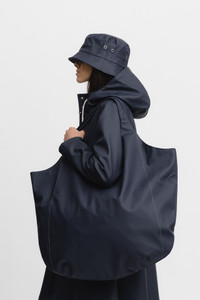 Svea Puffer Bag is a generously sized padded carry-all, suitable for everything from your weekly food shop to laundry runs, as a gym bag or even to pack for a weekend trip. Made in sturdy, hard-wearing waterproof fabric and constructed with double-welded seams, no moisture can get through to your belongings and the padding adds a layer of cushioned protection. The fleece-lined handles fit comfortably over the shoulder or in the hand while the inside zipped pocket secures small items or valuables. GARMENT DETAILS • Heavyweight 530-gram fabric • 150-gram technical insulator filling • Black cotton lining • Fleece-lined comfort grip handle • Double welded seams • Inside zip pocket • Inside phone pocket • Snap metal button closure • Debossed logo on front • Handles fit over shoulder or in hand • Height: 49 cm / 19" • Width: 62 cm / 24" • Designed in Stockholm • Made in Europe MATERIAL 100% PVC rubberized coating Membrane: 52% cotton, 48% polyester Lining: 70% cotton, 30% polyester Padding: 100% polyester with poly filling Read more about our fabrics
