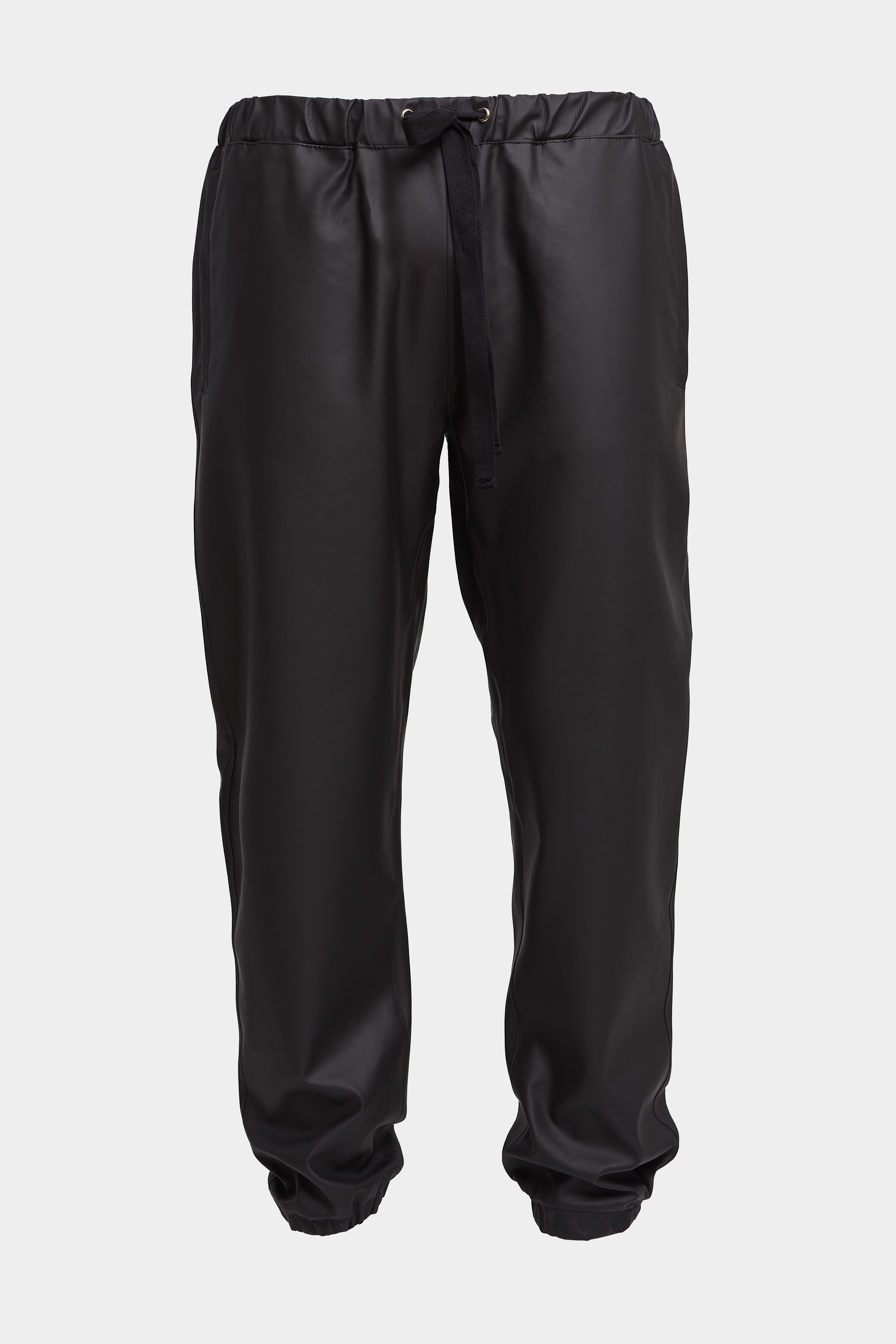 Vanadis are coverall trousers for men in light and airy waterproof fabric. Constructed with double-welded seams for complete rain protection, these trousers are perfect for cycling or other outdoor activities when the weather is wet. The elastic drawstring waist and bottom hems complete the relaxed fit and make the garment quick and easy to transition in and out of while providing ease of movement. Reflective stripes and eyelet punctures on each leg add visibility and breathability. The model is 187 cm / 6' 2" Wearing → SIZE M GARMENT DETAILS • Lightweight 230-gram fabric • Double-welded seams • Drawstring elastic waist • Elastic bottom hems • Reflective stripe on back of each leg for visibility • Eyelet puncture on each leg for ventilation • Side welt pockets • Single back welt pocket • +20 000 mm water column pressure • Designed in Stockholm • Made in Europe MATERIAL Coating: 100% PVC rubberized coating Membrane: 100% polyester Read more about our fabrics
